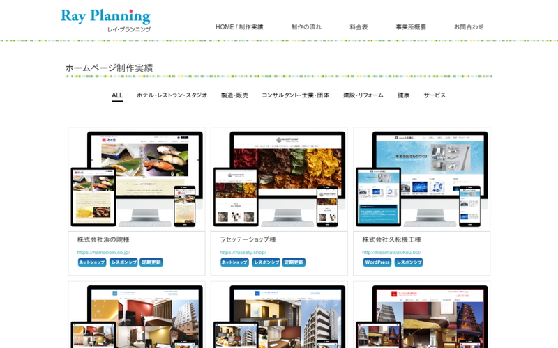 レイ・プランニングは、一筋の光を発するような強い意思のあるサイト制作を行うWeb制作会社です。ホテルグループなどを中心に、これまでに多数の制作実績があります。パソコンだけでなく、スマートフォンやタブレットに対応したページの制作が可能で、そのWebサイトが検索エンジンの結果に有効に表示されるような施策が可能です。サイト制作はデザイン案を出し、顧客の希望を聞いて修正を承るので、できるだけ希望に近付けたサイト制作を提供しています。より成果を上げるサイトにするためにCMSを用いて機能性をアップさせ、タイムリーな更新のできるサイトを構築します。他社で制作されたWebサイトの全面リニューアル、部分的な修正などにも対応しています。