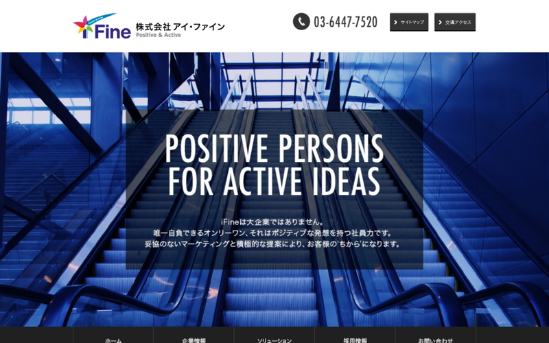 株式会社アイ・ファインは、創業2006年、10年以上の実績をもつ総合人材サービス会社です。事業内容は、アウトソーシング事業、イベント制作・プロモーション事業、人材派遣・人材紹介事業、海外(人材ビジネス&コンサルティング)事業、情報通信事業(ICT)です。ICT事業においては、WEB 制作、SEO コンサルタント、コンテンツ運用、WEB 運用といったWEB全般の対応からSES やシステム開発、プロダクト販売、デザイン、カタログ作成まで手掛けています。時代や顧客のニーズをいち早くキャッチしながら、妥協のないマーケティングと積極的な提案をクライアントに行い、「クライアント企業の発展」「社員の成長」「メンバー(スタッフ)の雇用創出」を目指し事業拡大を続けています。