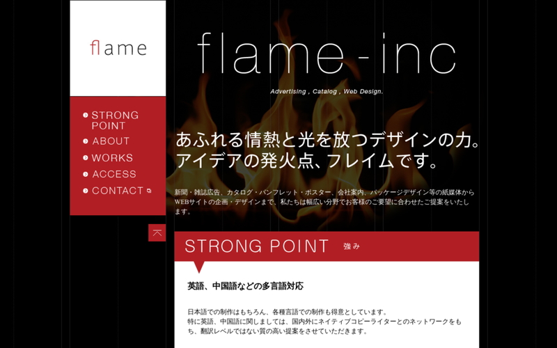 新聞、雑誌広告、カタログ・パンフレット、ポスター、パッケージデザインなどの紙媒体からWEBサイトの企画デザインまで幅広い分野で要望に合わせた制作をしている会社です。強みとして、日本語での制作はもちろん、各種言語での制作も得意としている点があげられます。特に英語と中国語に関しては、国内外にネイティブのコピーライターとのネットワークを持っているため、翻訳レベルではない質の高い提案をすることが可能です。そのため、日本語以外でのデザイン制作を必要としている方、その中で高いレベルでの翻訳を必要とする企画が必要な方には非常に心強い強みと言えます。また、取引先には東証1部上場企業をはじめとする多く企業が名を連ねている会社です。