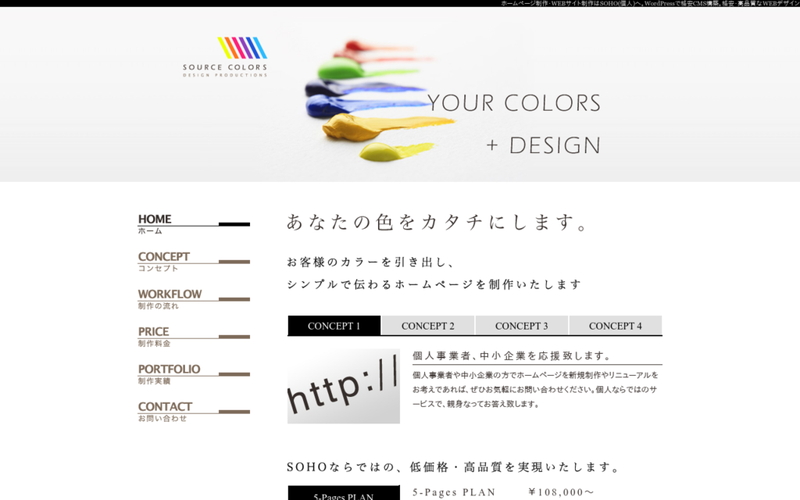 SOURCE COLORSは、ホームページ制作事業を行っている東京都世田谷区の会社です。シンプルで多くの人に伝わるデザインをモットーに、様々なジャンルのホームページを制作しています。SOHOならではの低コスト、クオリティーの高さが強みです。CMSを用いたWeb構築が得意で、WordPressなどを使用しランニングコストが安いホームページ制作をしてくれます。また、XHTMLやCSSなどを用いたホームページ制作も数多く行ってきた実績があります。SEO対策を得意としているのも強みです。GoogleやYahooなどの検索エンジンへの登録、キーワード調整などを行いホームページのアクセス数を増やすための様々なサポートをしてくれます。個人事業者や中小企業向けのホームページ制作が得意で、新規制作はもちろんリニューアルにも対応しています。